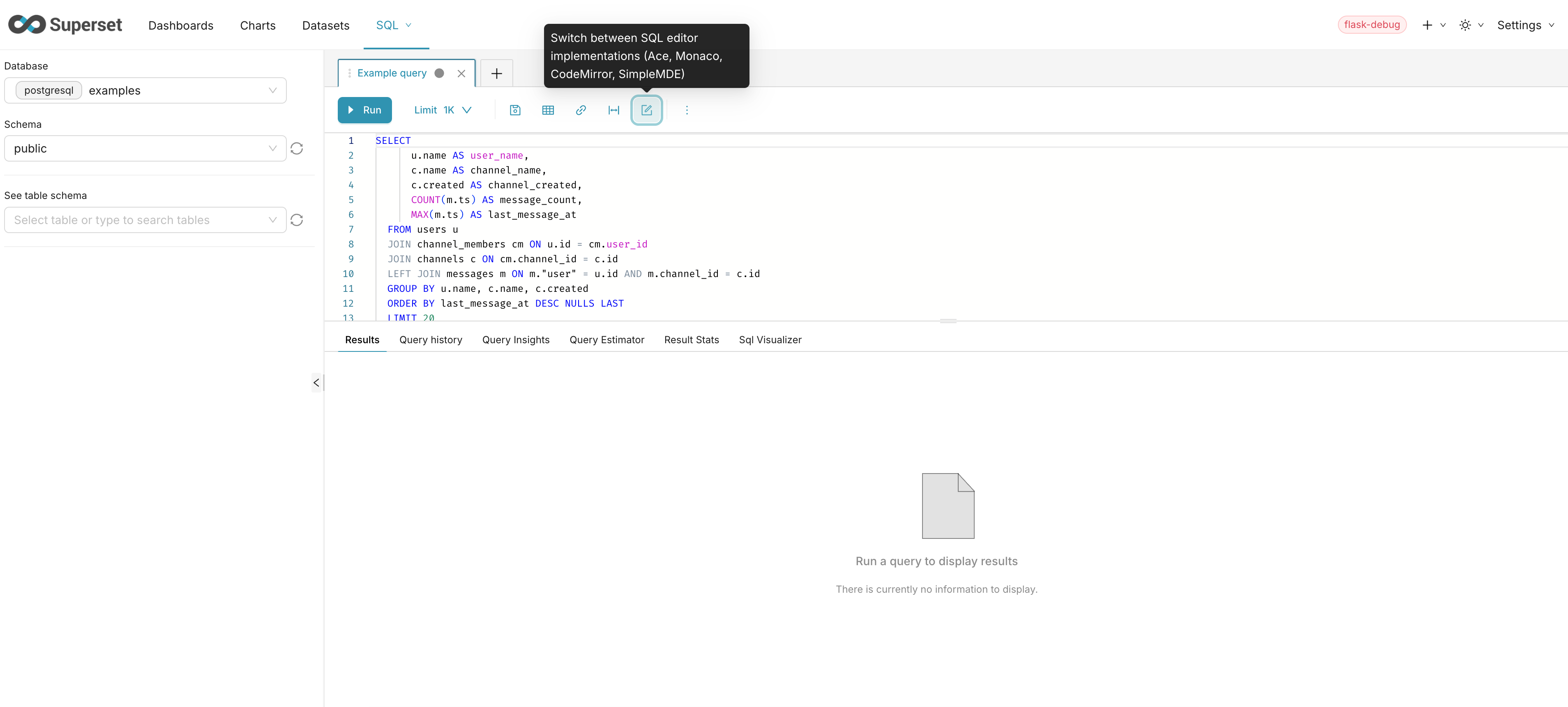 | Editor Snippets | A SQL Lab extension for managing and inserting reusable code snippets into the editor, with server-side persistence per user. | Michael S. Molina | ![]() |